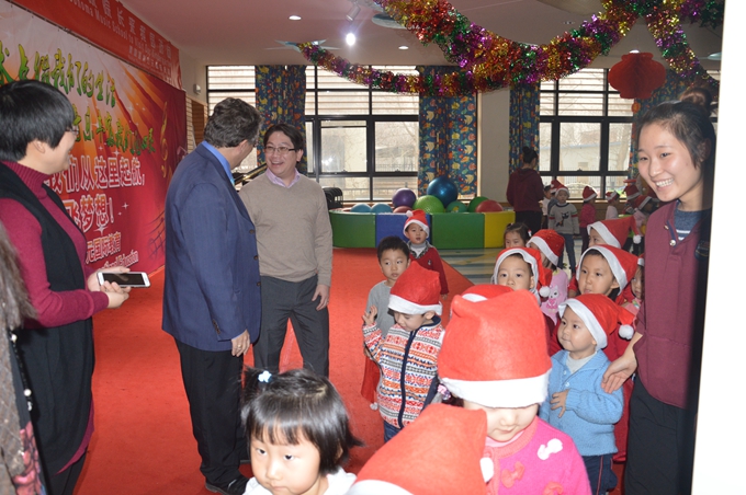 12月25日是西方的圣诞节,在节日的当天我们迎来了索诺玛大学音乐学院院长,对我园进行了参观和学术交流。下午外宾们观看了我园孩子们精心准备的舞蹈、武术、钢琴、架子鼓,在观看的过程中院长对我们的孩子赞不绝口,孩子们自信的展示凸显了他们在艺术领域造诣。