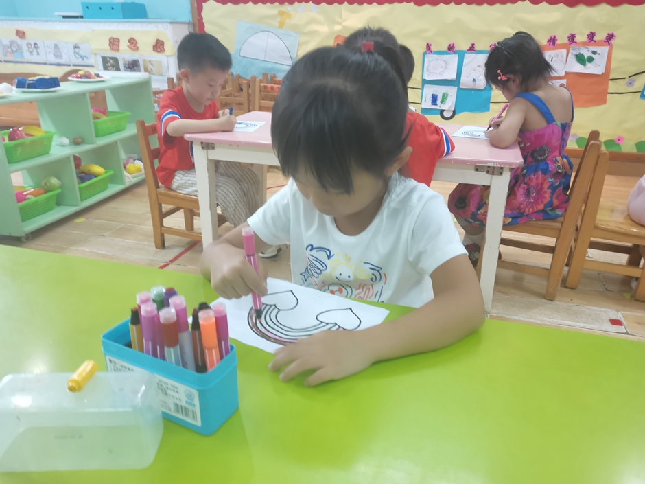 今天我们练习了涂色,用到了很多我们自己喜欢的颜色,现在我们涂色越来越棒了,不会再涂到线外面啦。