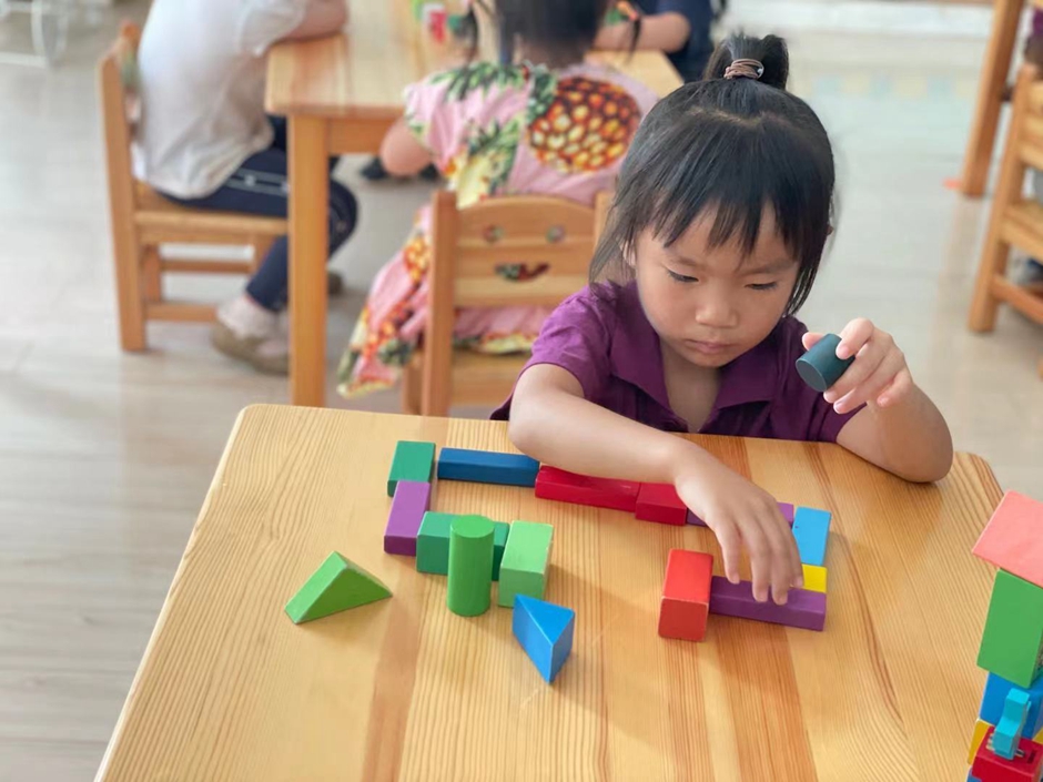 今天我们上了图形组合,用积木块搭建了很多作品,太喜欢这样的活动内容了