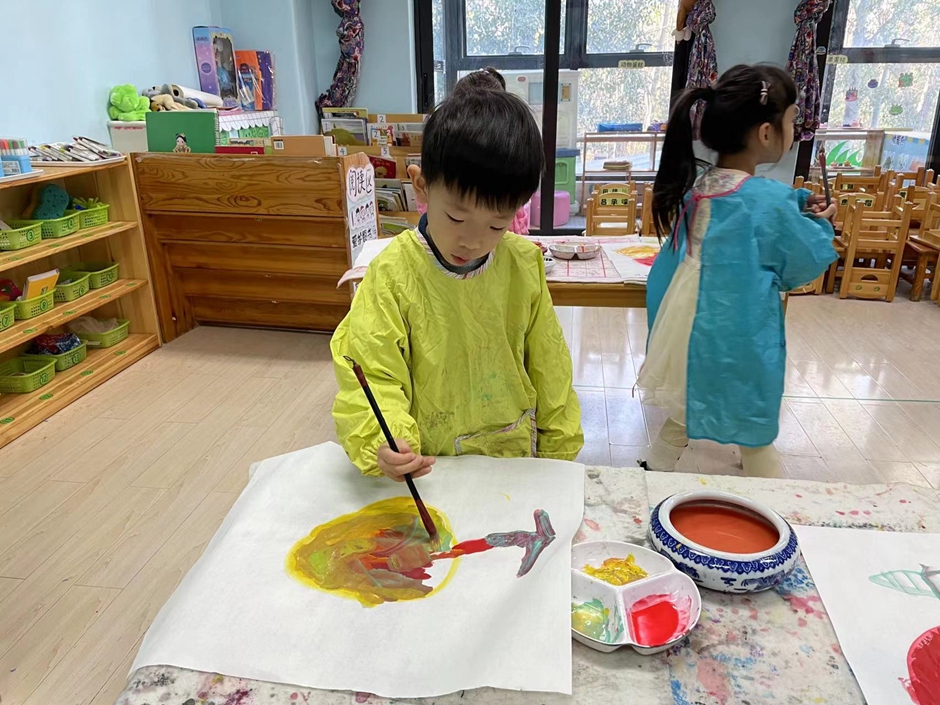 最喜欢的水墨画来啦,这节课我们画的是《苹果》,通过观察苹果的形状及颜色进行了创作。