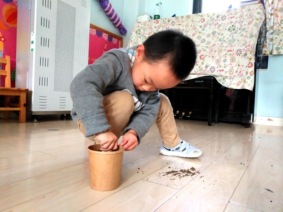 Kids are planting garlic in a pot as a part of our activity class so they can learn some gardnening tips .