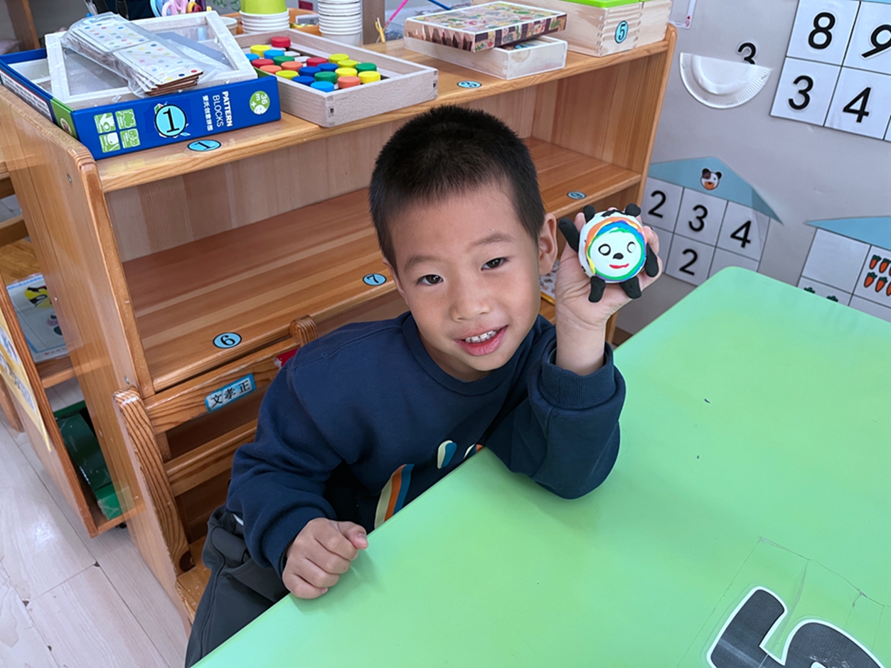 今天,我们用橡皮泥做了冬奥会的吉祥物,冰墩墩,看我们的冰墩墩多可爱呀!