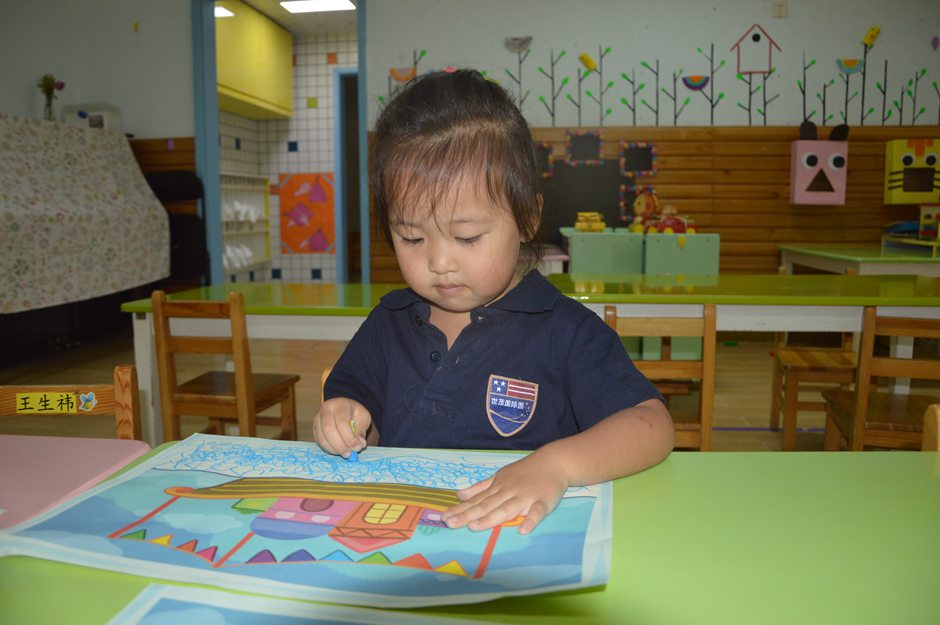 今天让孩子们自己体验画船在海上航行丢失的海浪,孩子们把自己见过的、想到的,画了下来,让这艘大船能在海浪里自由航行。
