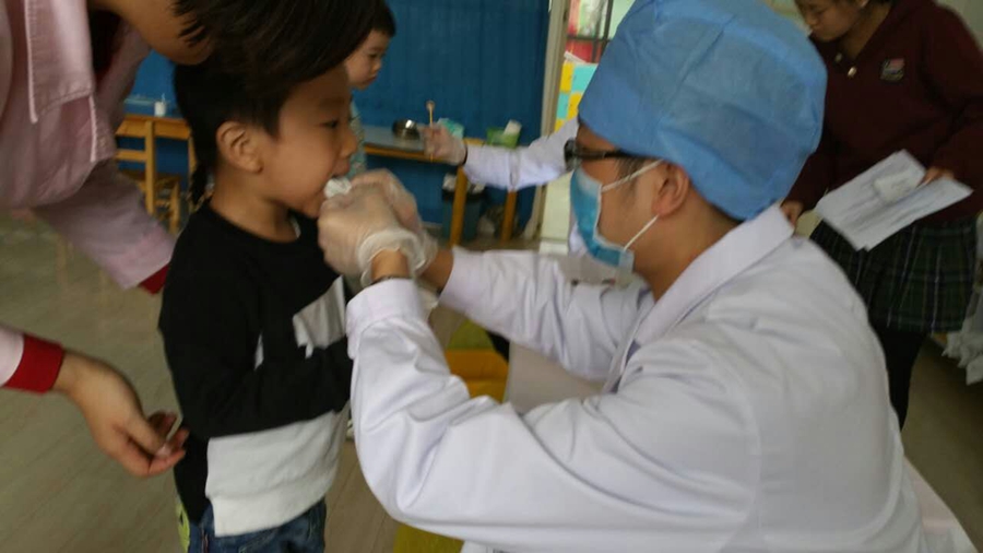 今天要为我的小牙齿做做功课了,要让它更健康,先让大夫阿姨看看吧