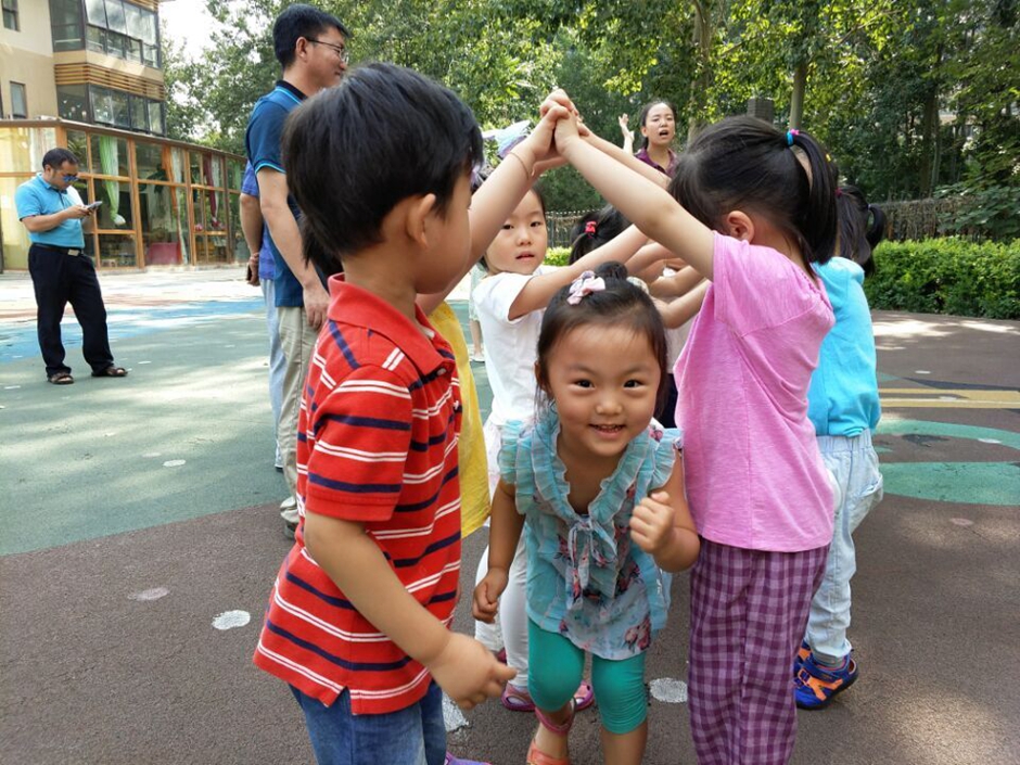今天是园里组织的半日开放,宝贝们的爸爸妈妈或者爷爷奶奶都来看他们户外,今天玩的游戏是过各种高低不同的山洞,先要和小朋友们做准备活动,之后就要过山洞了,现在过的是高山洞。